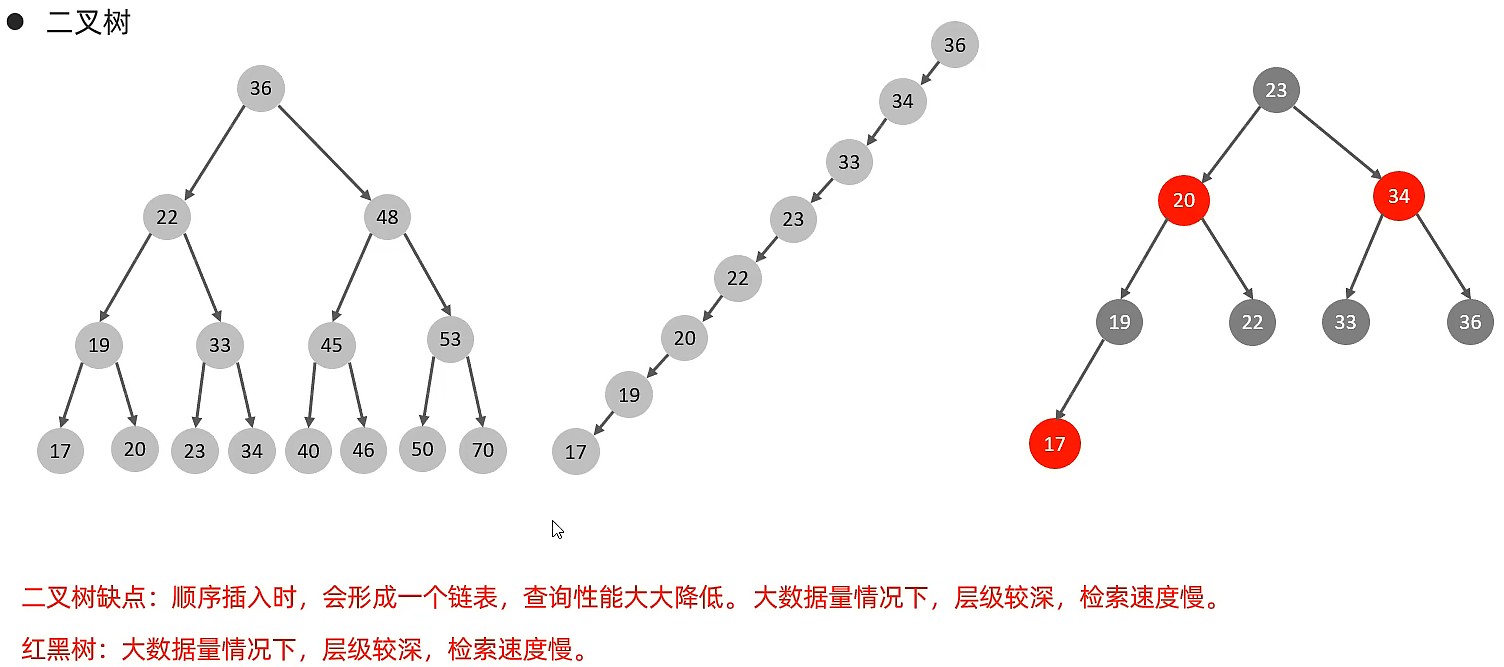- 对于B-Tree,无论是叶子节点还是非叶子节点,都会保存数据,这样导致一页中存储的键值减少,要同样保存大量数据,只能增加树的高度,导致性能降低;