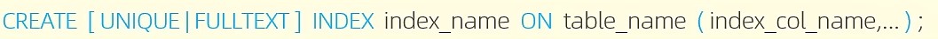 | 全文索引 | 全文索引查找的是本文中的关键字,而不是比较索引中的值 | 可以有多个 | FULLTEXT |