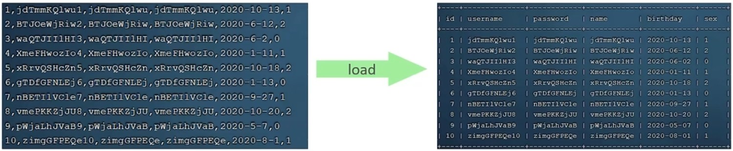 insert:批量插入、手动控制事务、主键顺序插入大批量插入: load data local infile