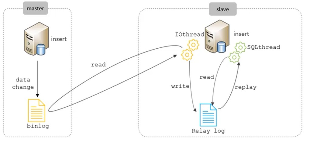 - slave重做中继日志中的事件,将改变反映它自己的数据。